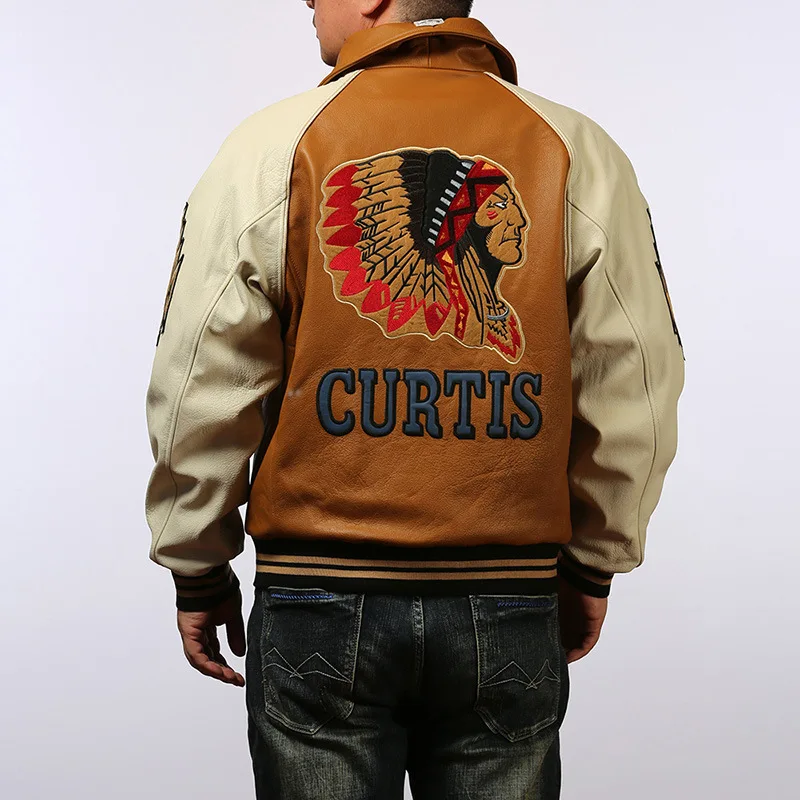 2023 Western Custom Logo Top Quality Material Genuine Leather Coats Embroidery Aztec Baseball Casual Sports Cowhide Jackets